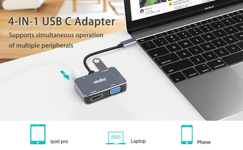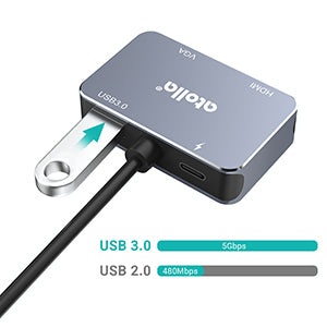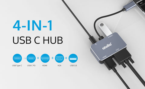 【Multifunctional USB-C HDMI VGA Adapter】Simply plug&play, this atolla adapter expands your USB-C port to 4K HDMI port / 1080p VGA port / USB 3.0 SuperSpeed port / 60W PD charging port simultaneously, perfect for meetings, trade shows, home video playback etc.